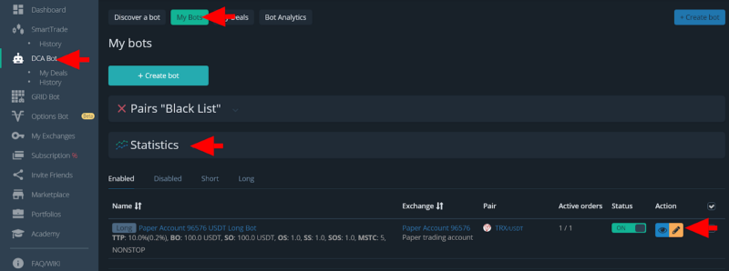 Each of us can recall how we entered the position at a high price before the asset’s major move, which reduced our final profits or even led to a loss. The DCA (Dollar Cost Averaging) Advanced Bot by 3Commas.io allows you to automatically increase the position of the chosen asset, providing the most advantageous purchase price by averaging purchases at several configurable levels and then selling at your target price.