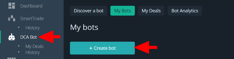 Click the “Create Bot” button in the DCA Bot section of the side menu:
