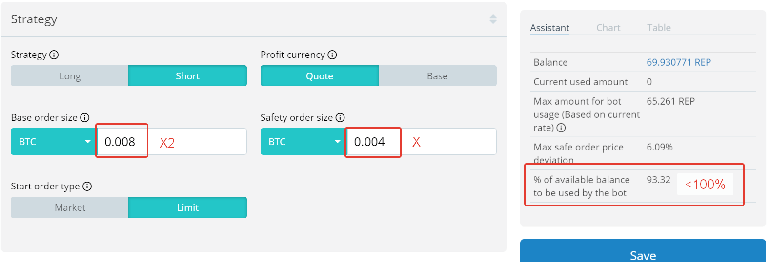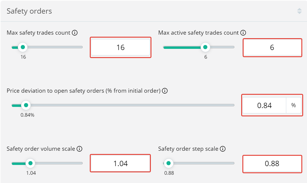 8. Price deviation for placing a safety order – 0.84