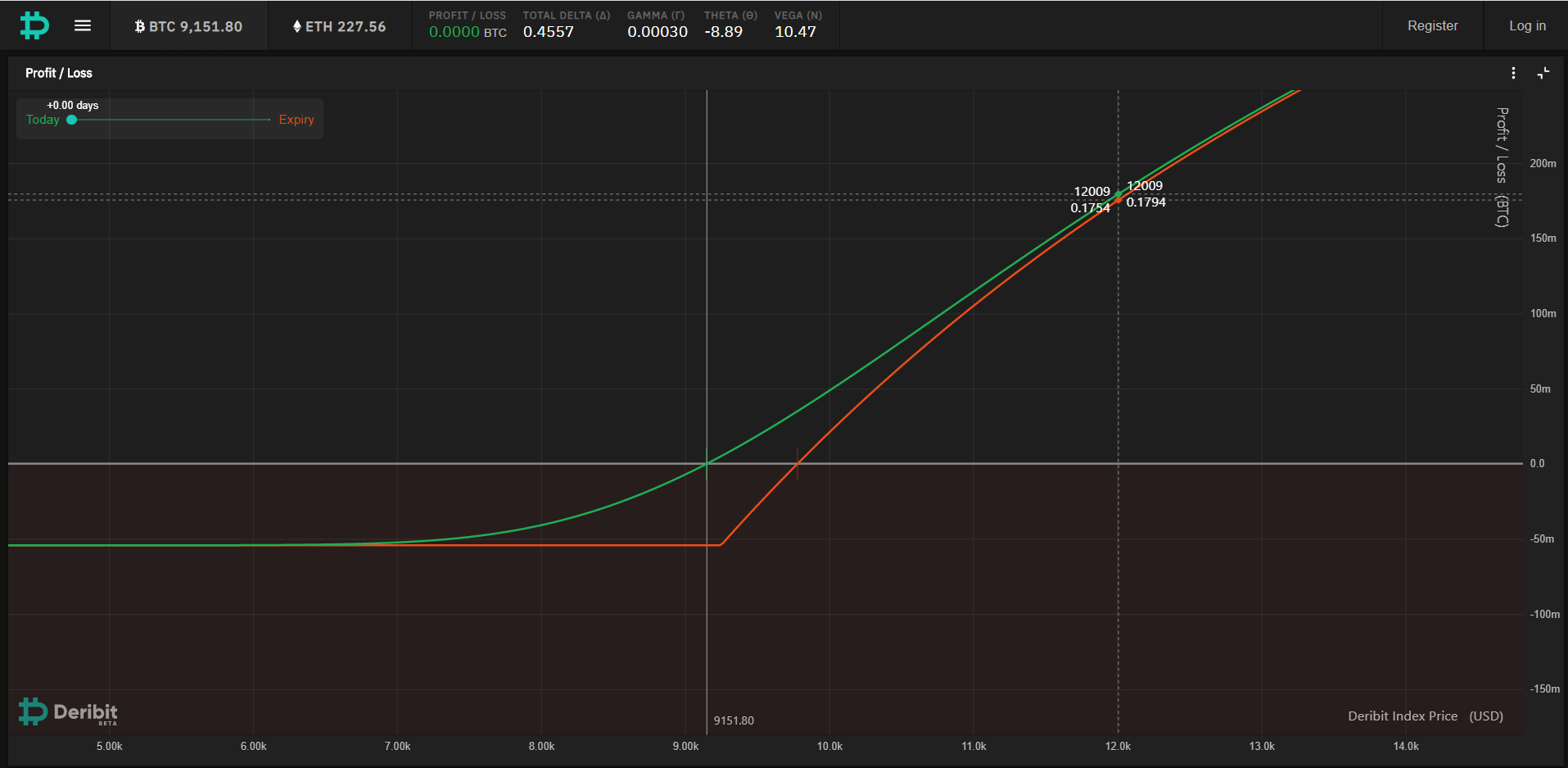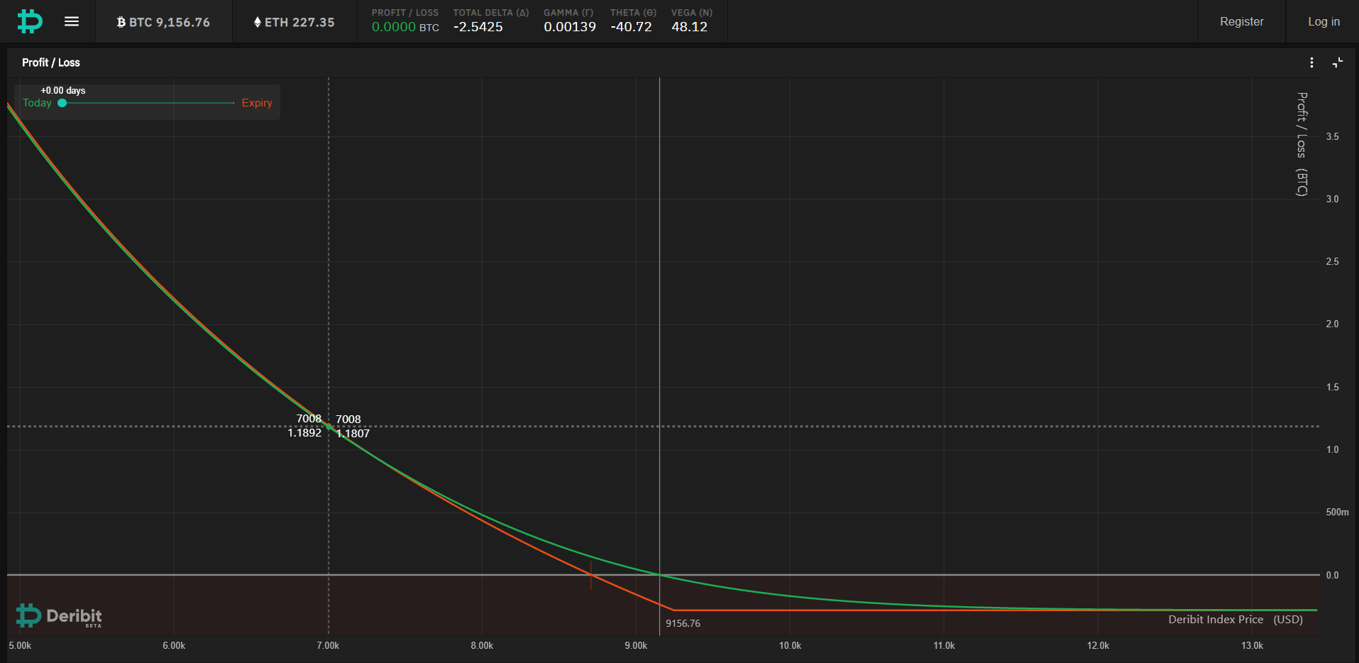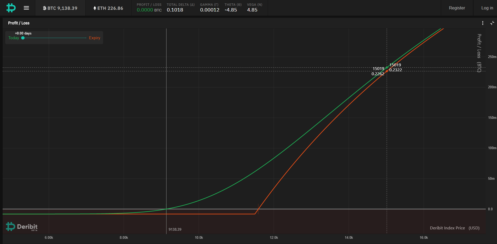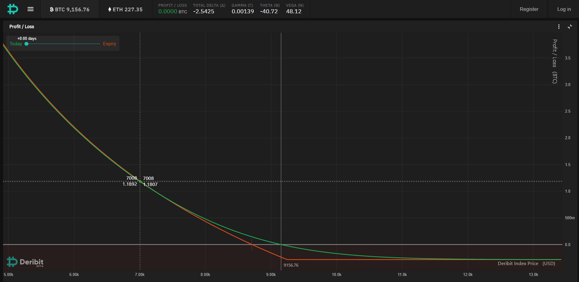 - If BTC continues a sideways movement up until the expiration date, we risk losing the entire premium sum.