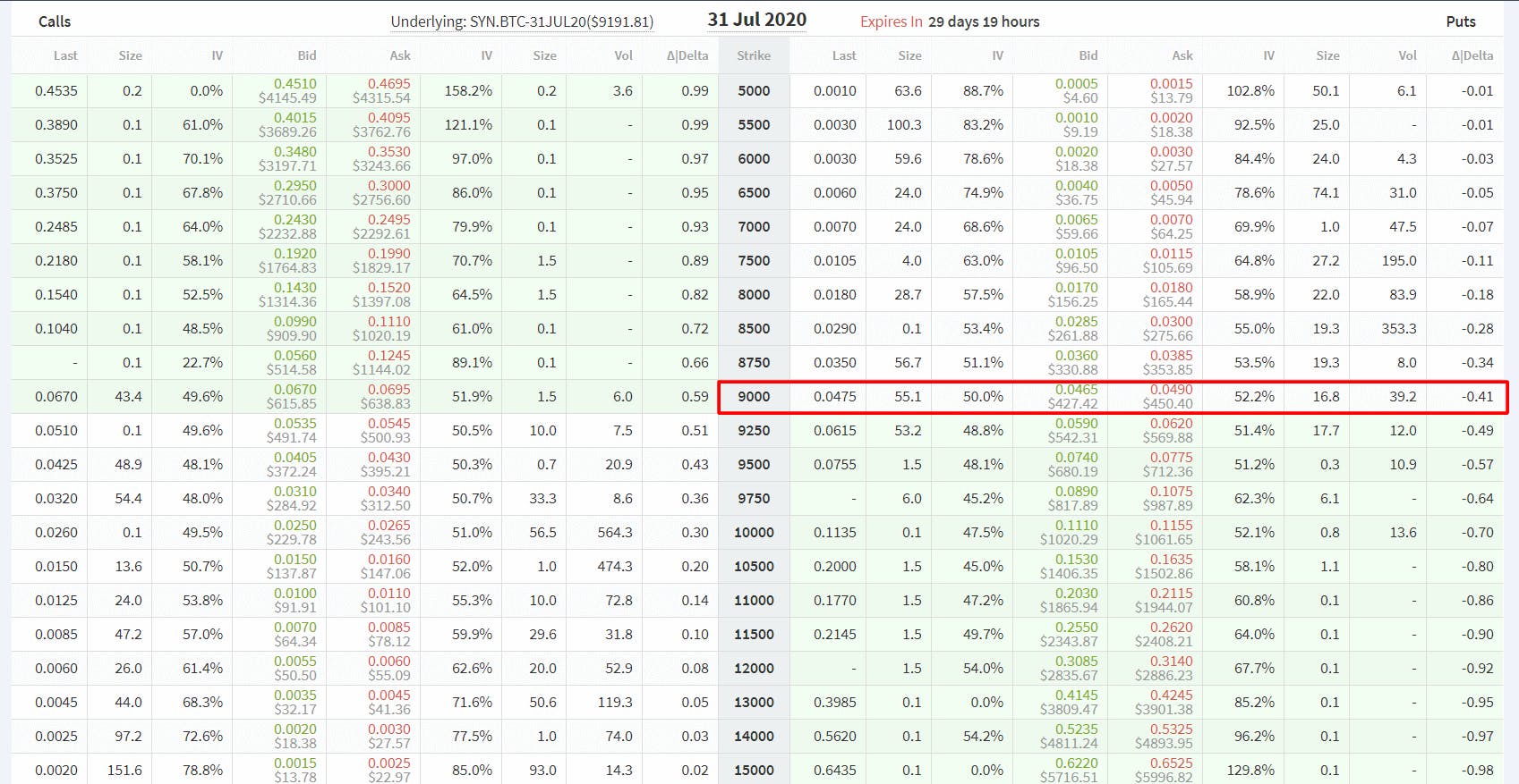 - However, if, for example, you forecast that by the expiration date BTC will increase to $15k, then having bought a cheap option with a strike of $11,500 for $ 82, on July 31 at a price of $15,000 the profit on the option will be $3480. The risk would only be $82, and you can earn 42x. Of course, this is just an example, but it reflects the possibilities of options during periods of strong volatility.