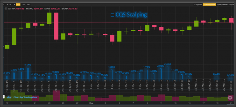 And finally, the most interesting part – profit from the deposit per day relative to the BTC / USDT chart of the Binance exchange.