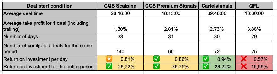 Based on my observation, paid signals are slightly different from free ones, reacting to market changes and reducing the number of incoming signals, which in theory should keep the deposit. To draw conclusions on the overall minimization of “investment”, pls take a look at this table: