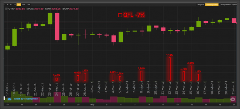QFL – there were some problems with the recommendation from the signal provider because I did not know, and I still don’t know where to get them. Based on the one 3commas users’ advice, I’ve set 3%, and for about 10 days the bot had been working with this profit, and 10 deals were closed. On the 13th of March after analyzing the bot deals, I realized that the price “grows” up to 5% -12% 5-12% from the signal during the day. I decided to increase the profit from 3% to 4.7% and from this date the bot has been working with a profit of 4.7%. At the moment 15 transactions have made.