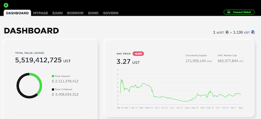 Протокол Anchor, разработанный совместно с Cosmos и Polkadot, предлагает возможности кредитования, залогового обеспечения и предоставления ликвидности, являясь рынком для взаимодействия кредиторов и заемщиков стейблкоинов. На платформе пользователи могут вносить также стейблкоины на основе Ethereum: USDT, USDC, DAI и другие. Доходность предоставляемых UST составляет 20,5%, а остальных стейблкоинов — около 16,5%.