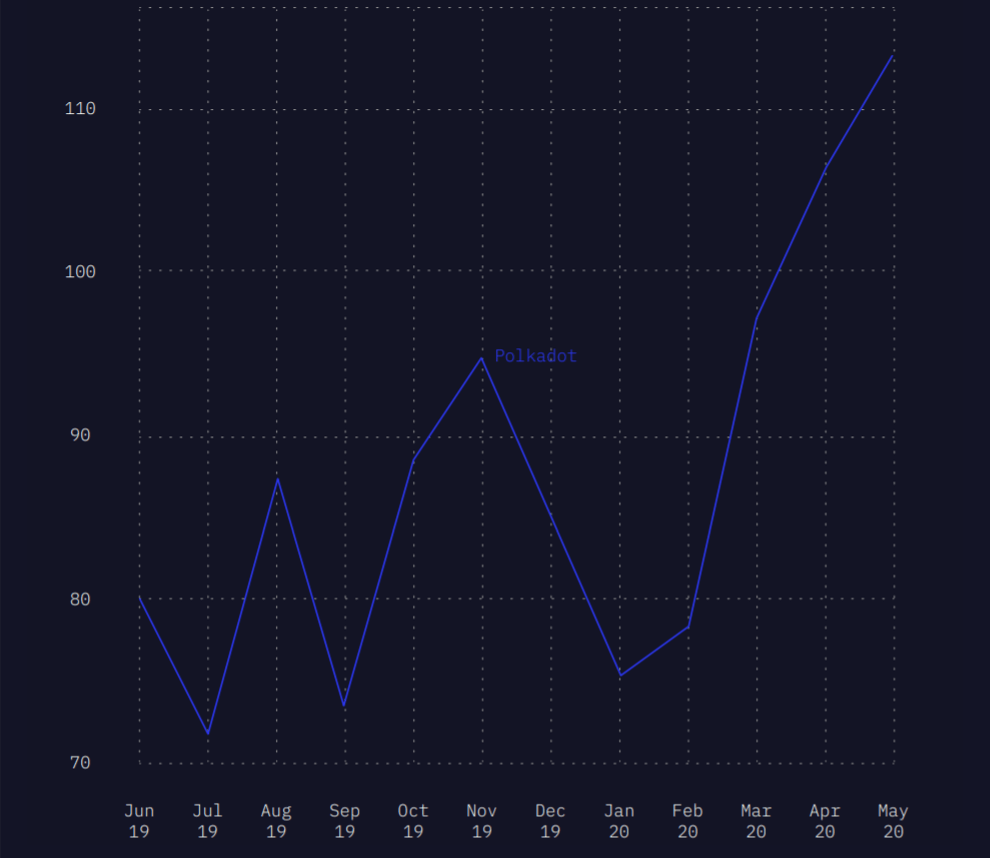 Nevertheless, new players such as Polkadot (+44%) and Cosmos (+15%) show a significant increase in developer activity, although, given their recent major launches, one may not be certain that the growth will continue at the same pace. Theta (+931%) and Cardano (+580%) were the record holders for the number of weekly code updates. Analysts attribute the rapid growth of Theta updates to the combination of the launch of the second main network in late May, the recent price change, and low development activity in mid-2019. The reason for the growing number of Cardano updates is probably a mixture of the upcoming release and the recent price movement. In both cases, such growth is quite unlikely to continue.