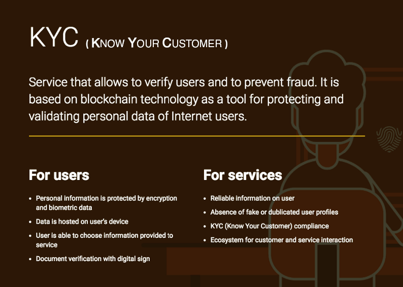 Touching on decentralized solutions and protocols, digital identification-oriented protocols and projects already exist. For example, the Traceto project that offers the development of a global decentralized KYC network using smart contracts and AI, or IBM Blockchain Trusted Identity — a decentralized blockchain-based platform for identity verification.