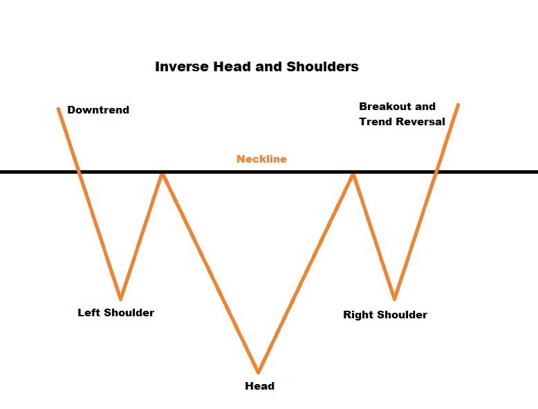 The inverse head and shoulders figure is a strong trend reversal signal. This figure is formed during a clear downtrend and consists of three parts: the left shoulder, the head and the right shoulder. Another important parameter of the figure is a so-called neckline.