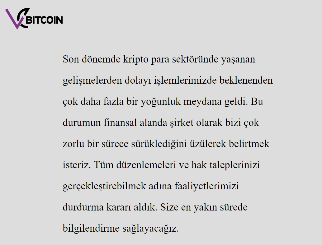 Almost simultaneously, another Turkish cryptocurrency exchange, Vebitcoin, ceased its operations. On Friday, April 23, the following message appeared on its homepage: