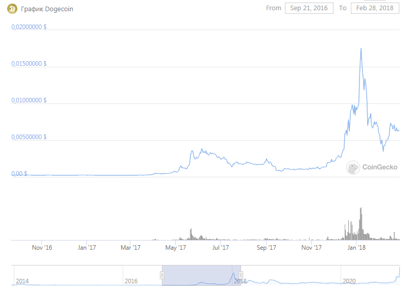 In early December 2013, DOGE rose in price more than three-fold amid China’s new policy on cryptocurrencies and the People’s Bank of China’s recommendations to financial institutions to ban bitcoin trading. After its initial explosive growth, the coin subsequently lost more than 80% of its value.